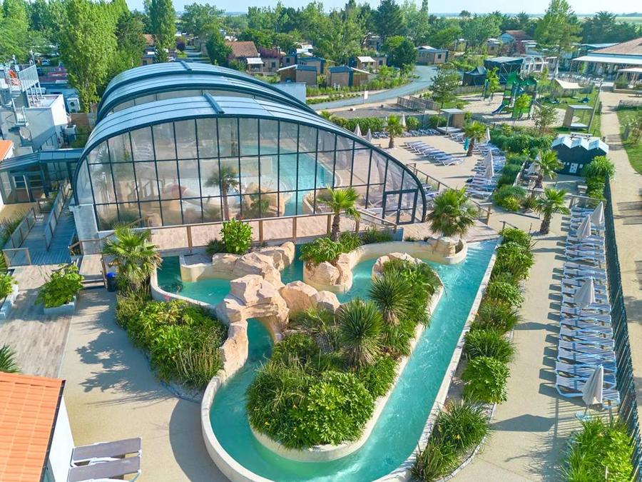 Implanté au sein d'un vaste parc verdoyant de 15 hectares, à seulement 700 mètres de la plage, ce camping à la Tranche sur Mer propose un espace aquatique exceptionnel. Dès l'ouverture, petits et grands peuvent apprécier une piscine extérieure, un bassin couvert, une piscine sous dôme agrémentée d'une rivière sauvage, des toboggans et des pataugeoires ludiques pour les enfants. L'ensemble du parc aquatique est chauffé durant la haute saison, garantissant confort et plaisirs aquatiques pour tous.Lors des vacances scolaires d'été, les enfants profitent d'animations variées organisées du dimanche au vendredi, tandis que les amateurs de sport peuvent prendre part à des tournois encadrés par l'équipe du camping.En juillet et août, le camping met à disposition de nombreux équipements et services : aire de jeux pour les plus jeunes, restaurant proposant des spécialités locales, bar convivial et épicerie pour vos besoins quotidiens. Profitez d'un séjour familial dans un environnement naturel propice à la détente et à la découverte du littoral vendéen.